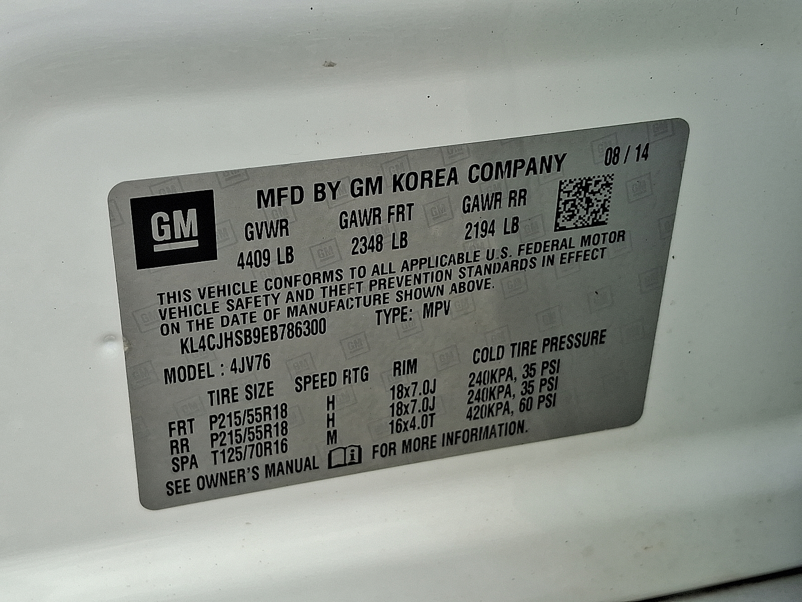 VIN KL4CJHSB9EB786300