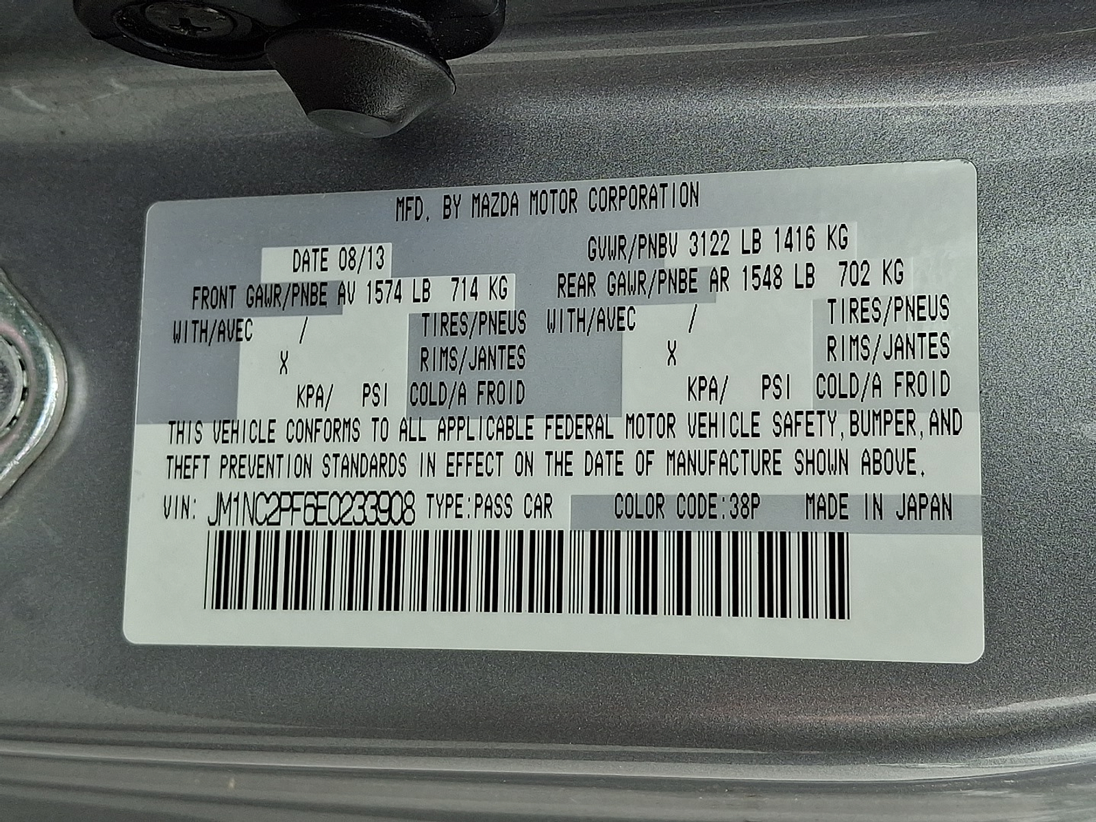 VIN JM1NC2PF6E0233908