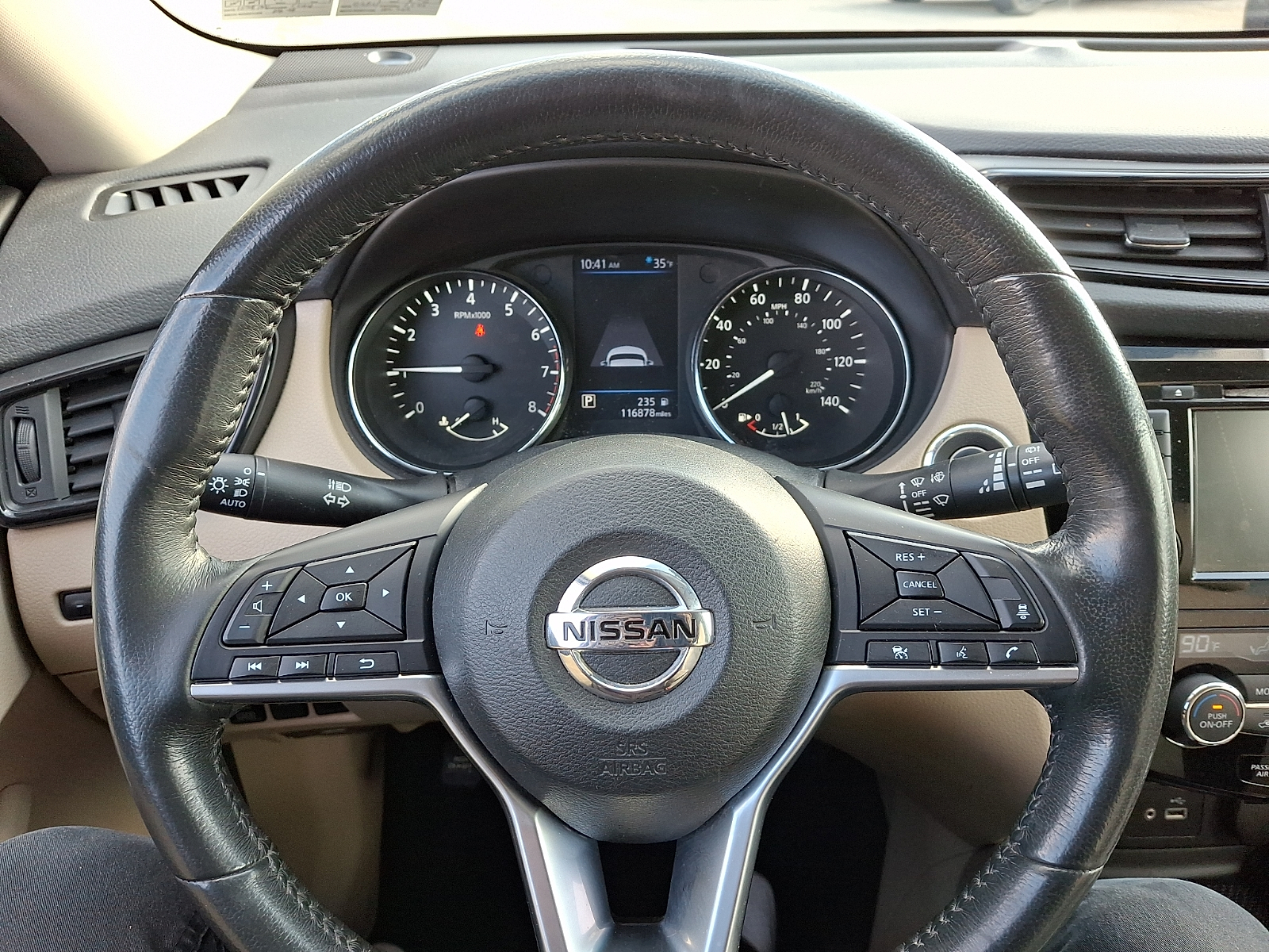 - Leather and metal-look steering wheel