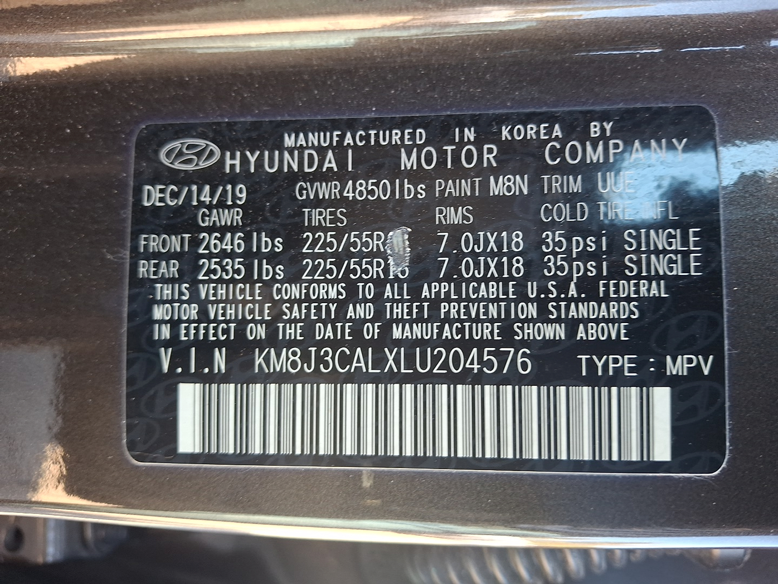 VIN KM8J3CALXLU204576
