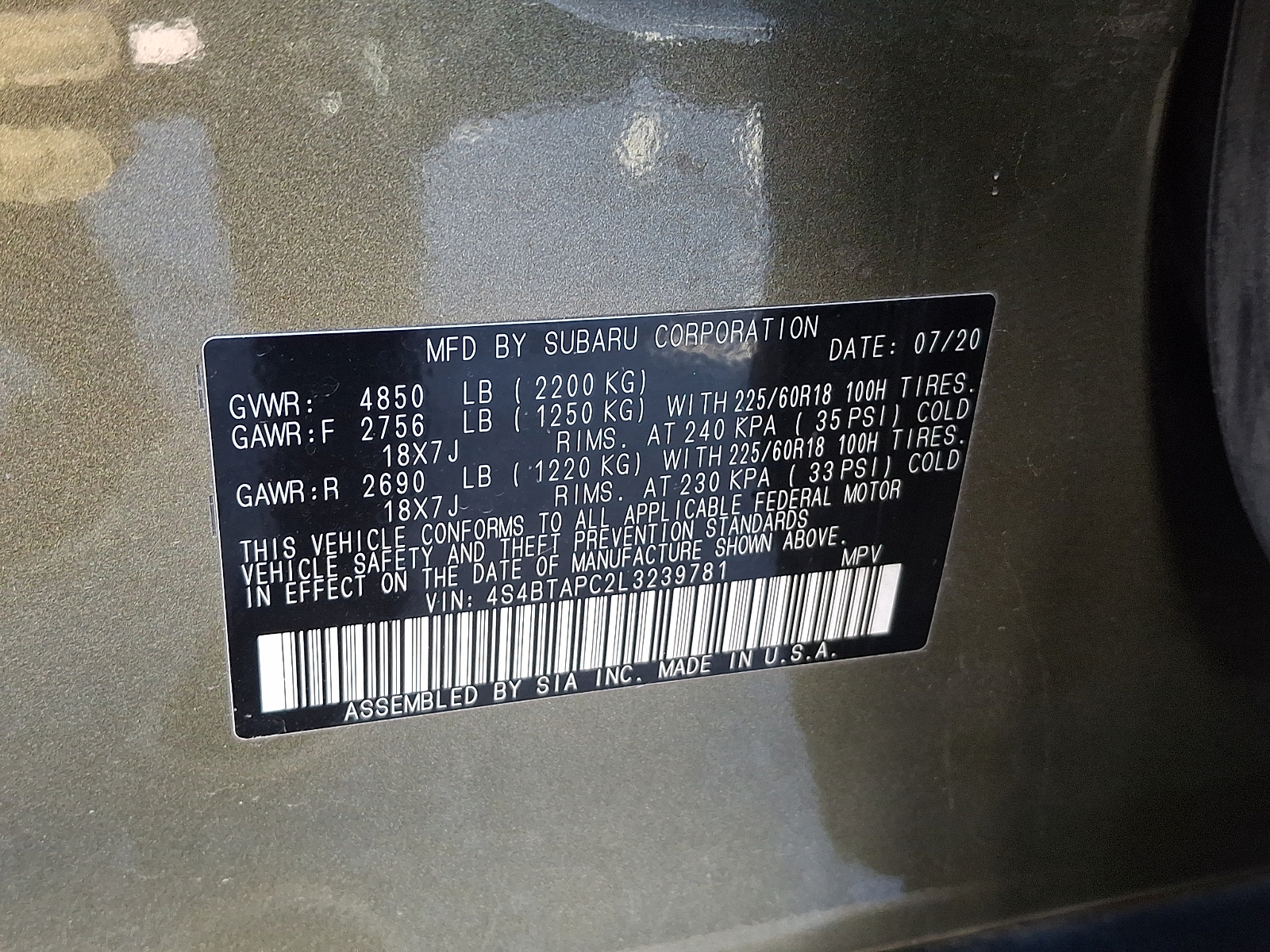 VIN 4S4BTAPC2L3239781