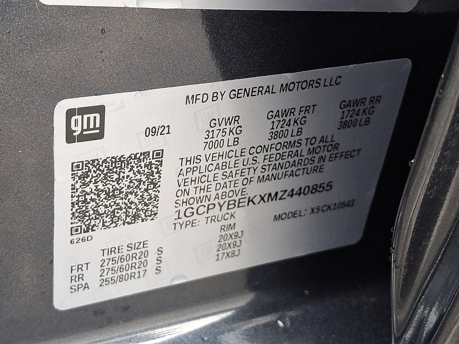 VIN 1GCPYBEKXMZ440855