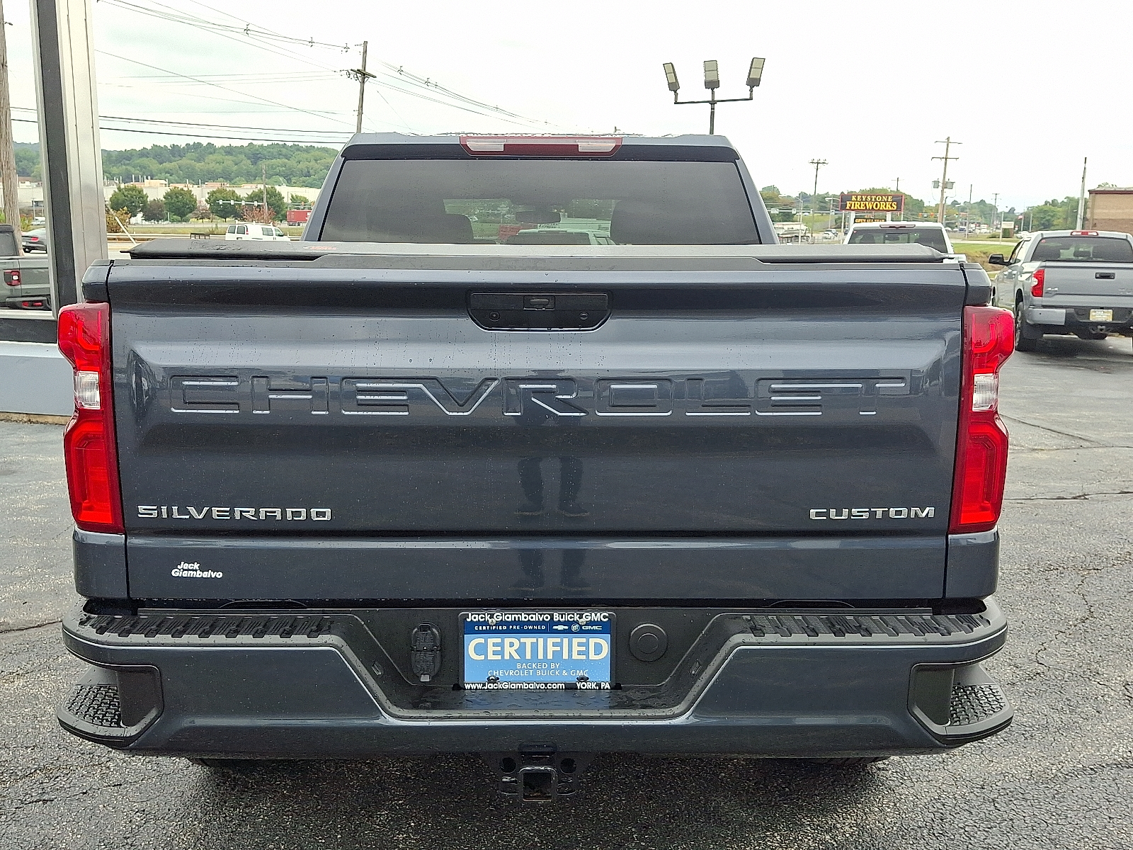 Certified. Shadow Gray Metallic 2021 Chevrolet Silverado 1500 Custom 4WD 8-Speed Automatic 2.7L Turbo GM CERTIFIED! ONE OWNER! CLEAN AUTOCHECK USB / AUX INPUTS TO PLAY MUSIC! BACK UP CAMERA! LOCAL TRADE! LOW MILES! SUPER CLEAN! 8-Speed Automatic 4WD Black Cloth.Recent Arrival! Odometer is 52098 miles below market average!Chevrolet Certified Pre-Owned Details: * Vehicle History * Roadside Assistance * 172 Point Inspection * 24 months/24000 miles (whichever comes first) Certified Pre-Owned Scheduled Maintenance Plan and 3 days/150 miles (whichever comes first) Vehicle Exchange Program. SiriusXM 3-month trial subscription. * Transferable Warranty * Warranty Deductible: $0 * Limited Warranty: 12 Month/12000 Mile (whichever comes first) from certified purchase date * Powertrain Limited Warranty: 72 Month/100000 Mile (whichever comes first) from original in-service dateWith a wide array of different used and certified pre-owned vehicles to choose from Jack Giambalvo is the best York used car dealer in the area. For years we have been a favorite Harrisburg Lancaster and Hanover PA GMC & Buick used car source; so stop by or contact us today and experience the Jack Giambalvo Buick GMC difference.Your York GMC and Buick dealership is just minutes from Lancaster Shrewsbury New Freedom and Baltimore!