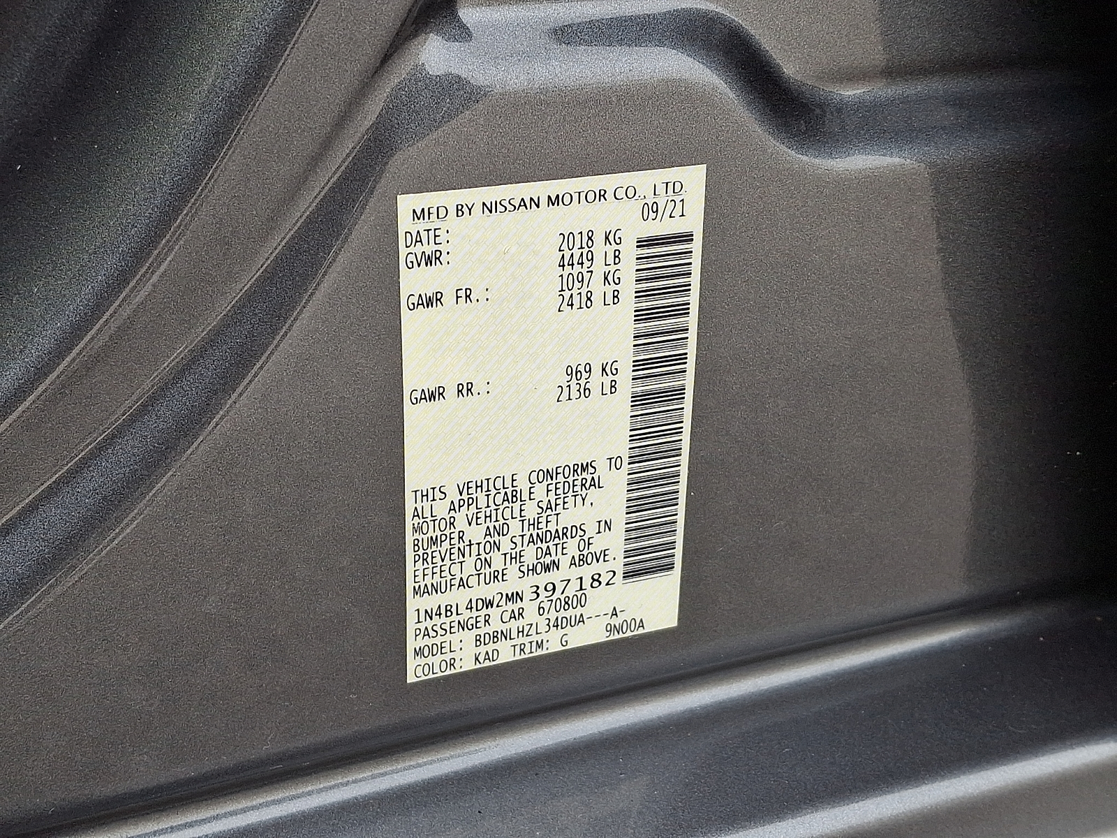VIN 1N4BL4DW2MN397182