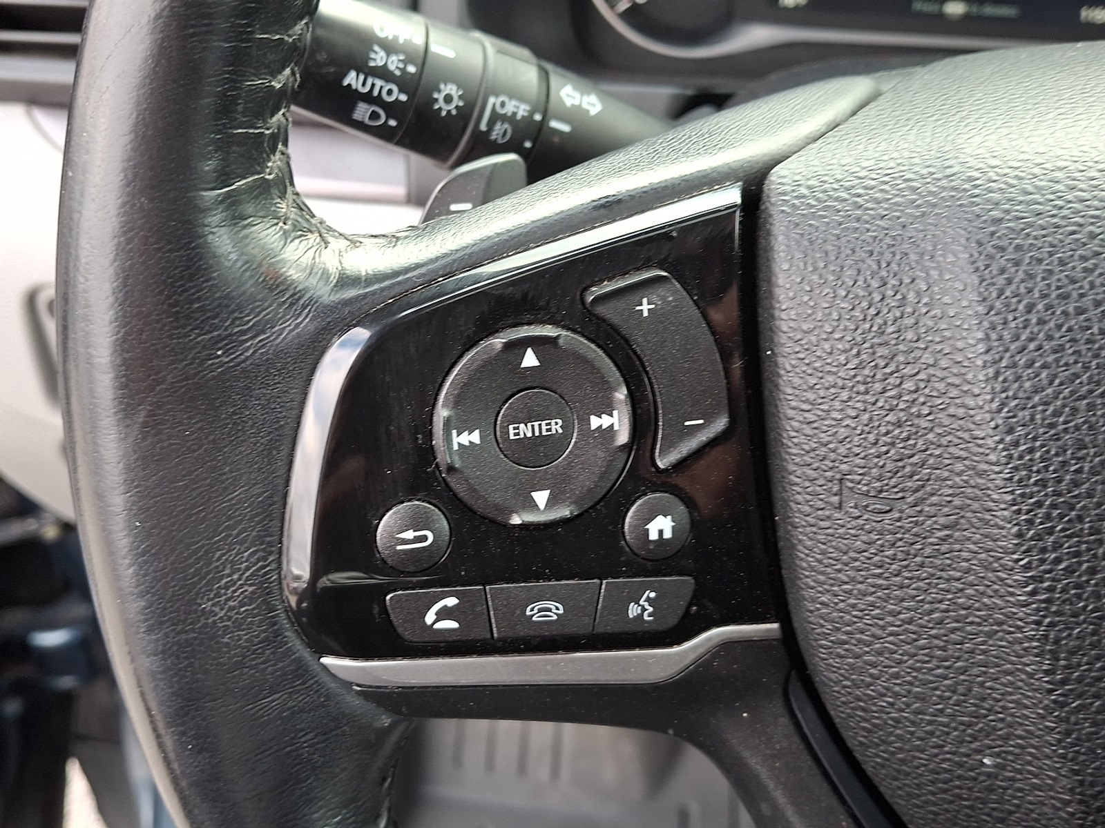 - Leather and metal-look steering wheel