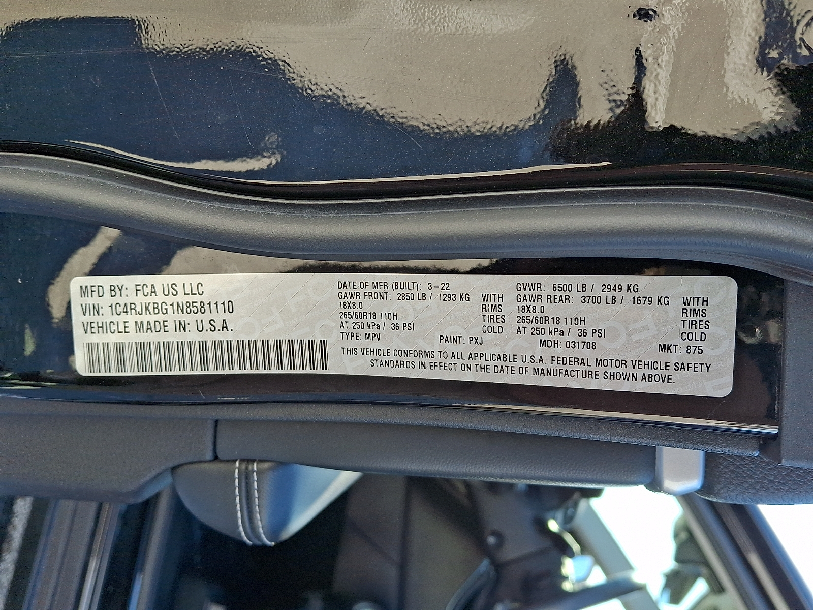 VIN 1C4RJKBG1N8581110