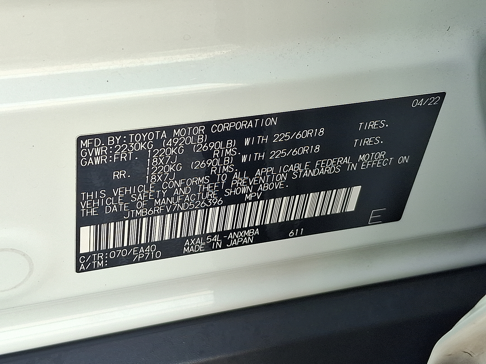 - P225/60HR18 AS BSW front and rear tires