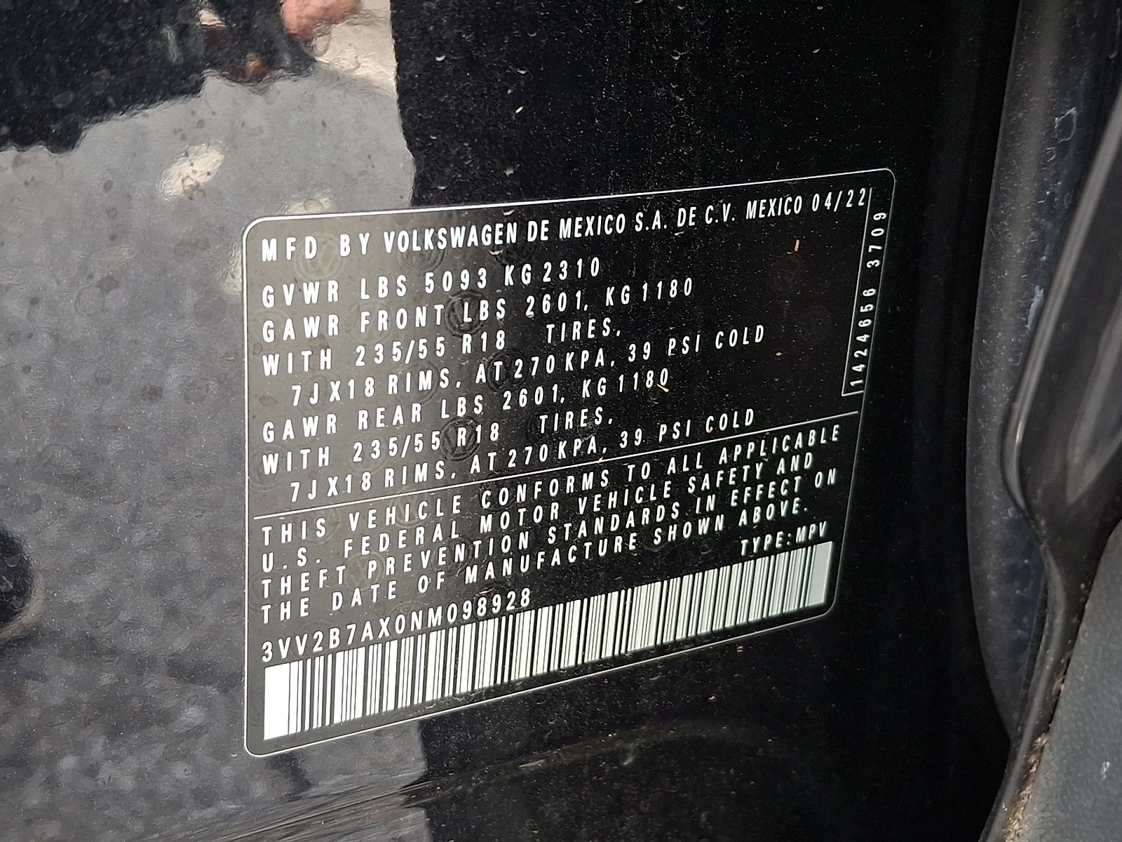 VIN 3VV2B7AX0NM098928