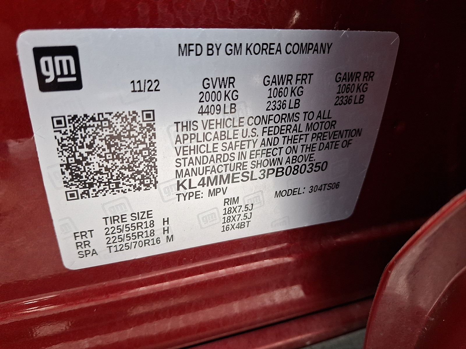 VIN KL4MMESL3PB080350