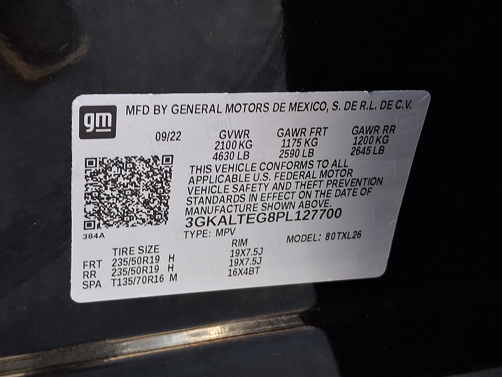 VIN 3GKALTEG8PL127700