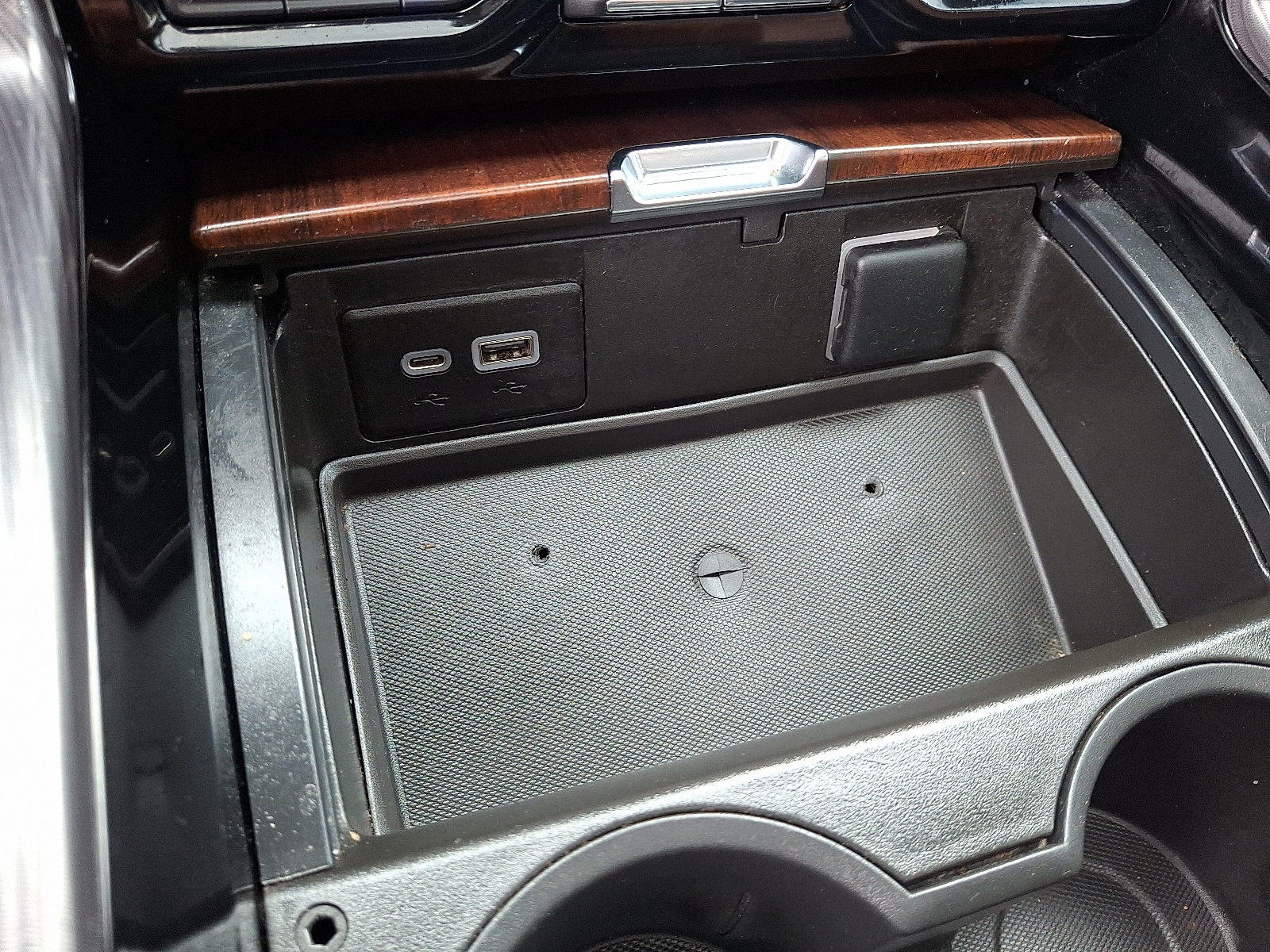 - Sliding front seat center armrest