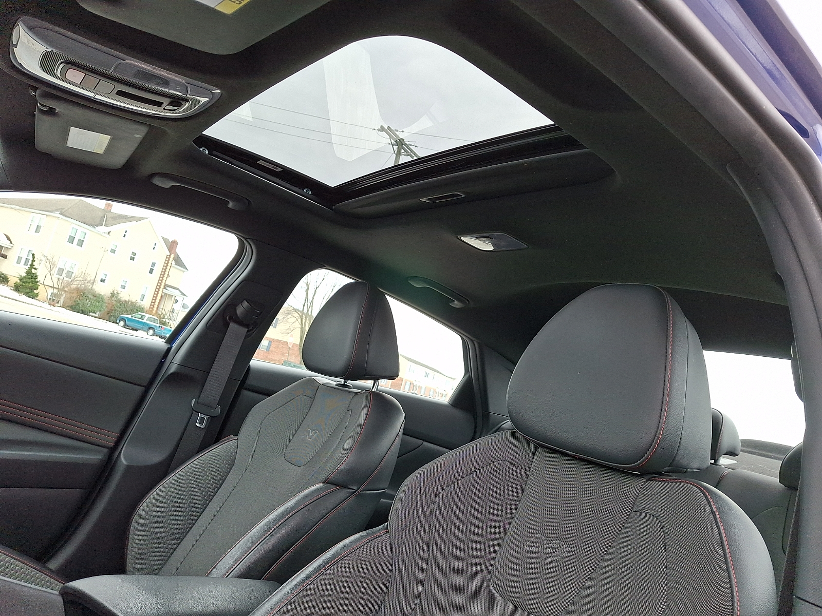 - Cloth and leather front seat upholstery