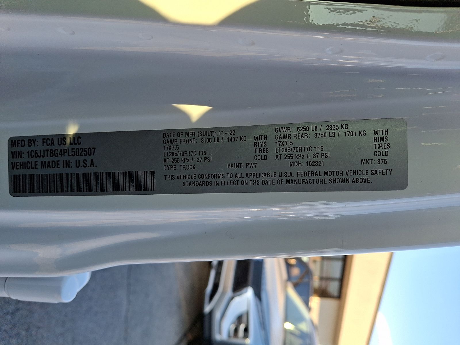 VIN 1C6JJTBG4PL502507