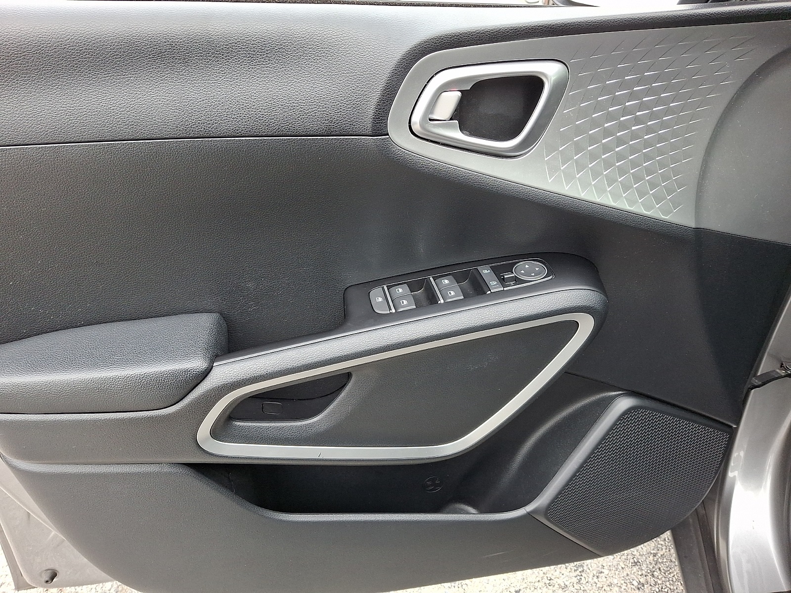 - Black grille with metal-look surround