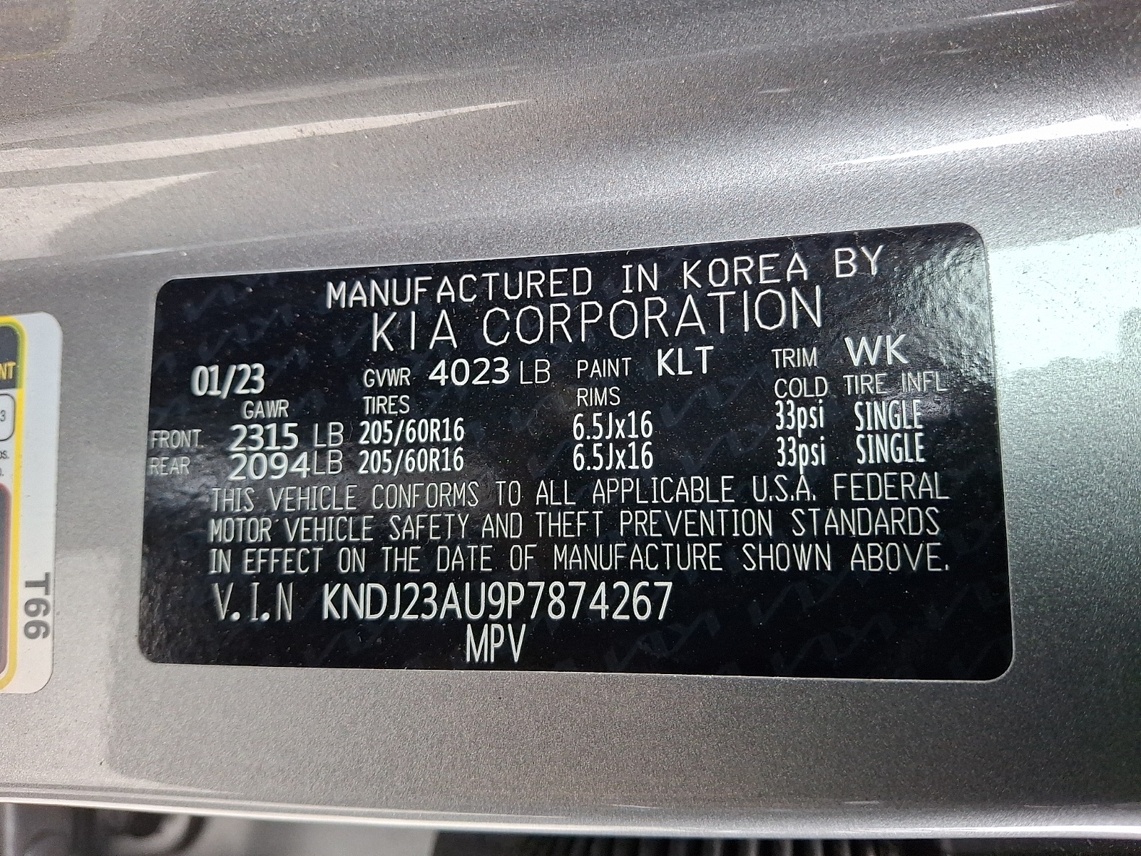 VIN KNDJ23AU9P7874267