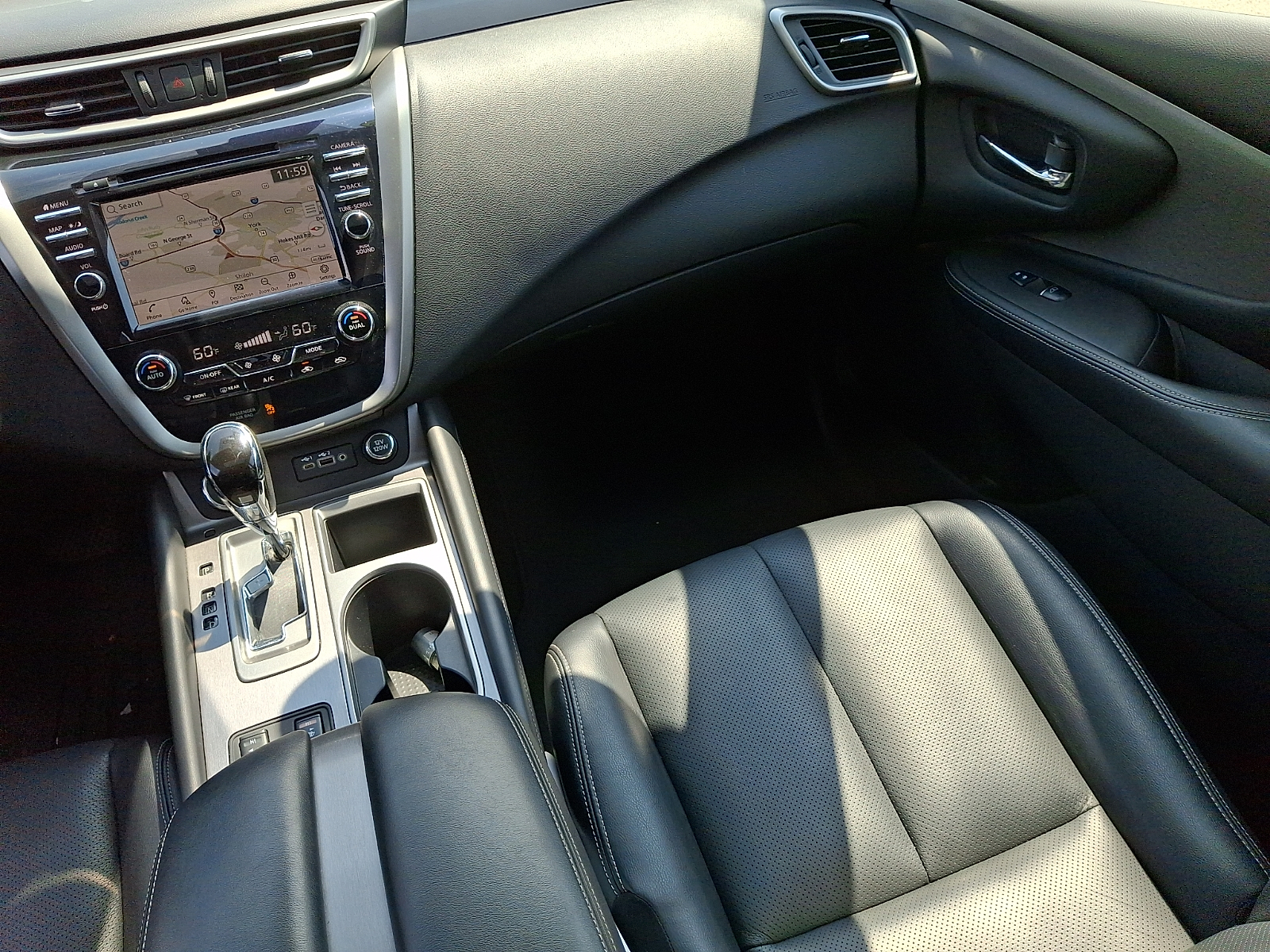 - Leather front seat upholstery