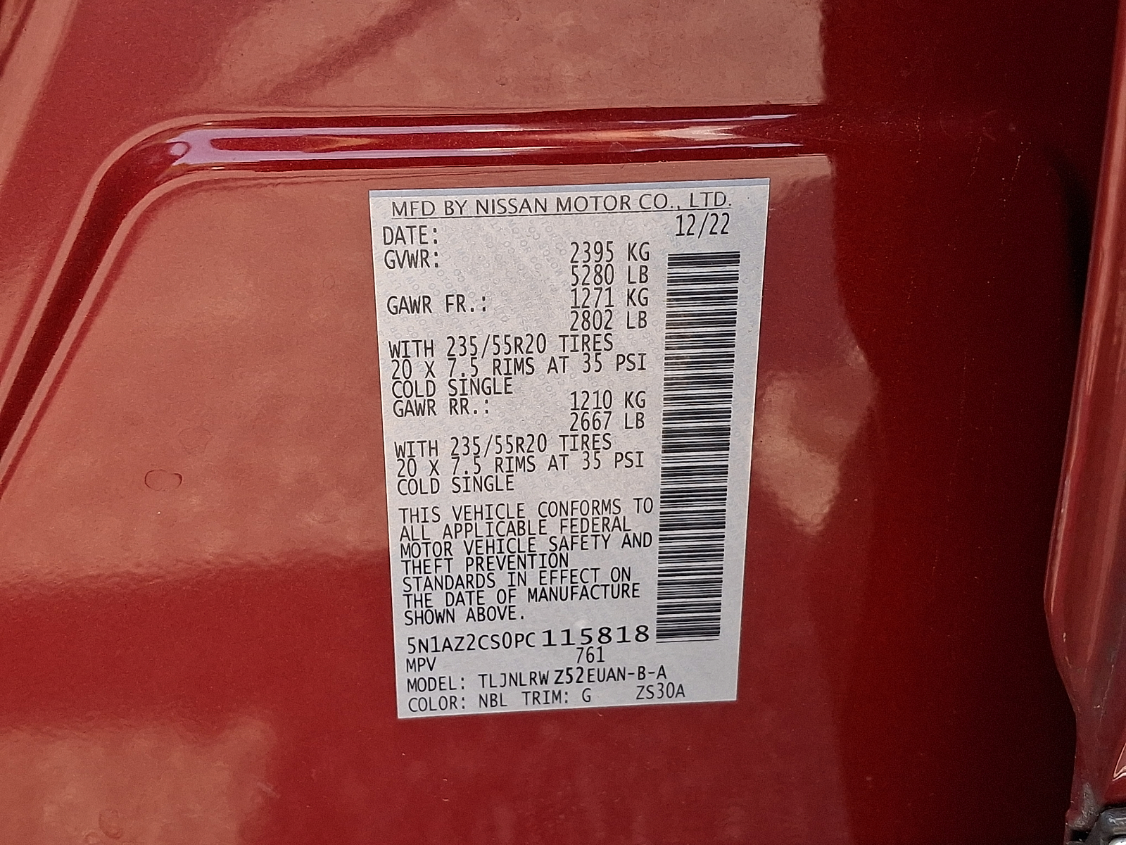 VIN 5N1AZ2CS0PC115818
