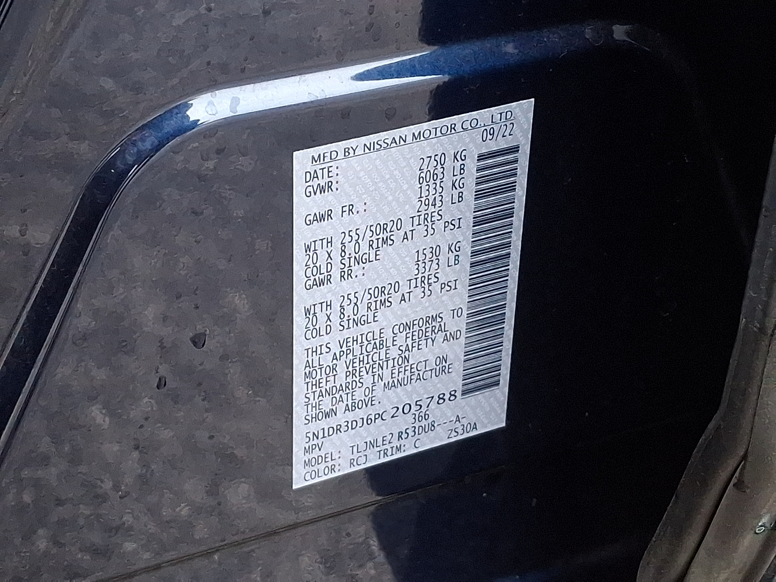 VIN 5N1DR3DJ6PC205788