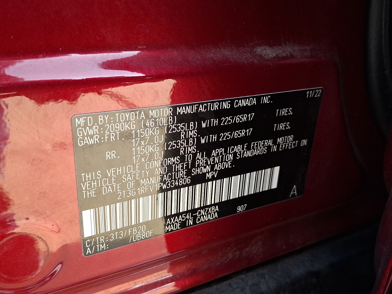 VIN 2T3G1RFV1PW334806