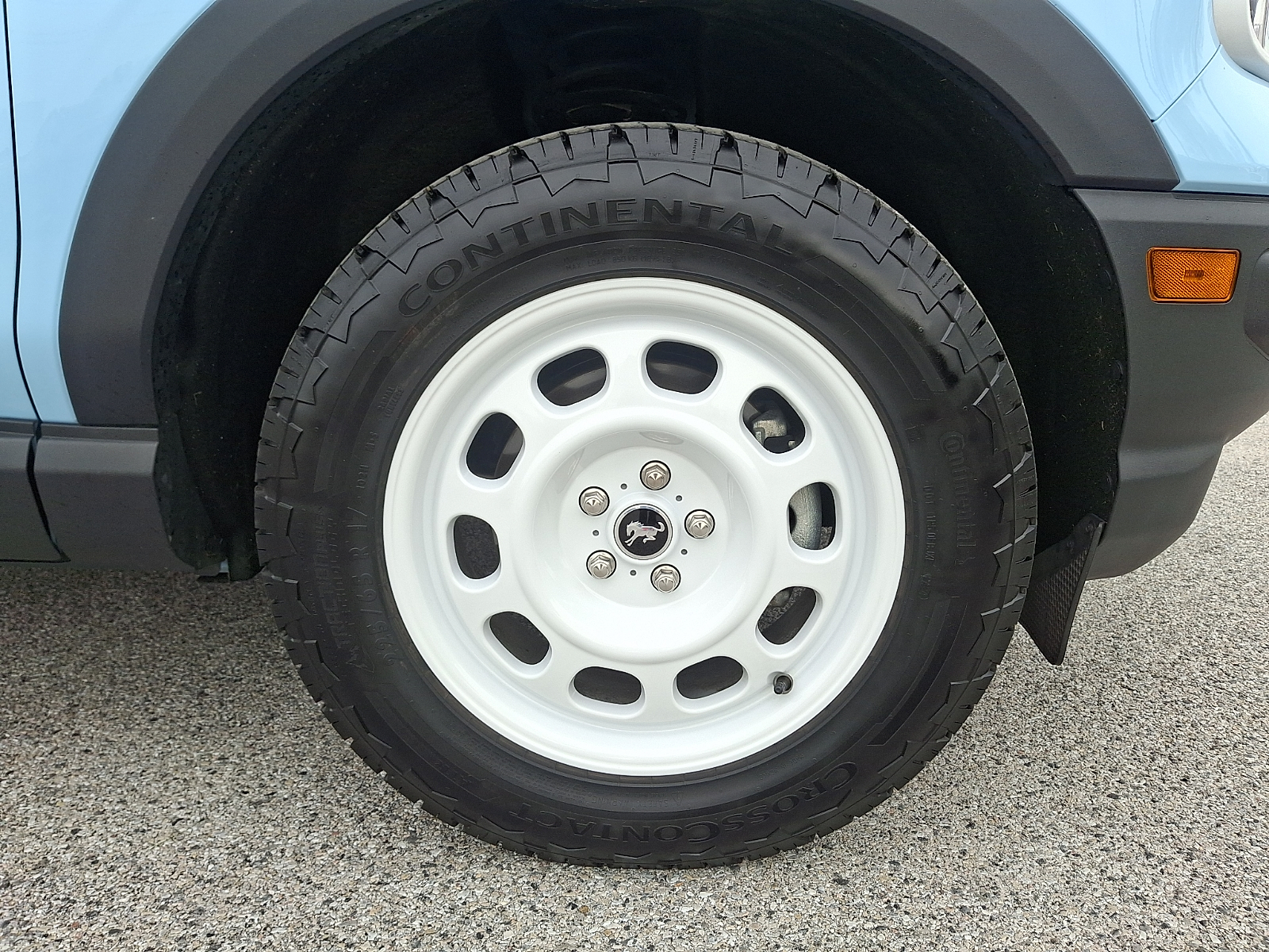 - 17 x 7-inch front and rear white aluminum wheels