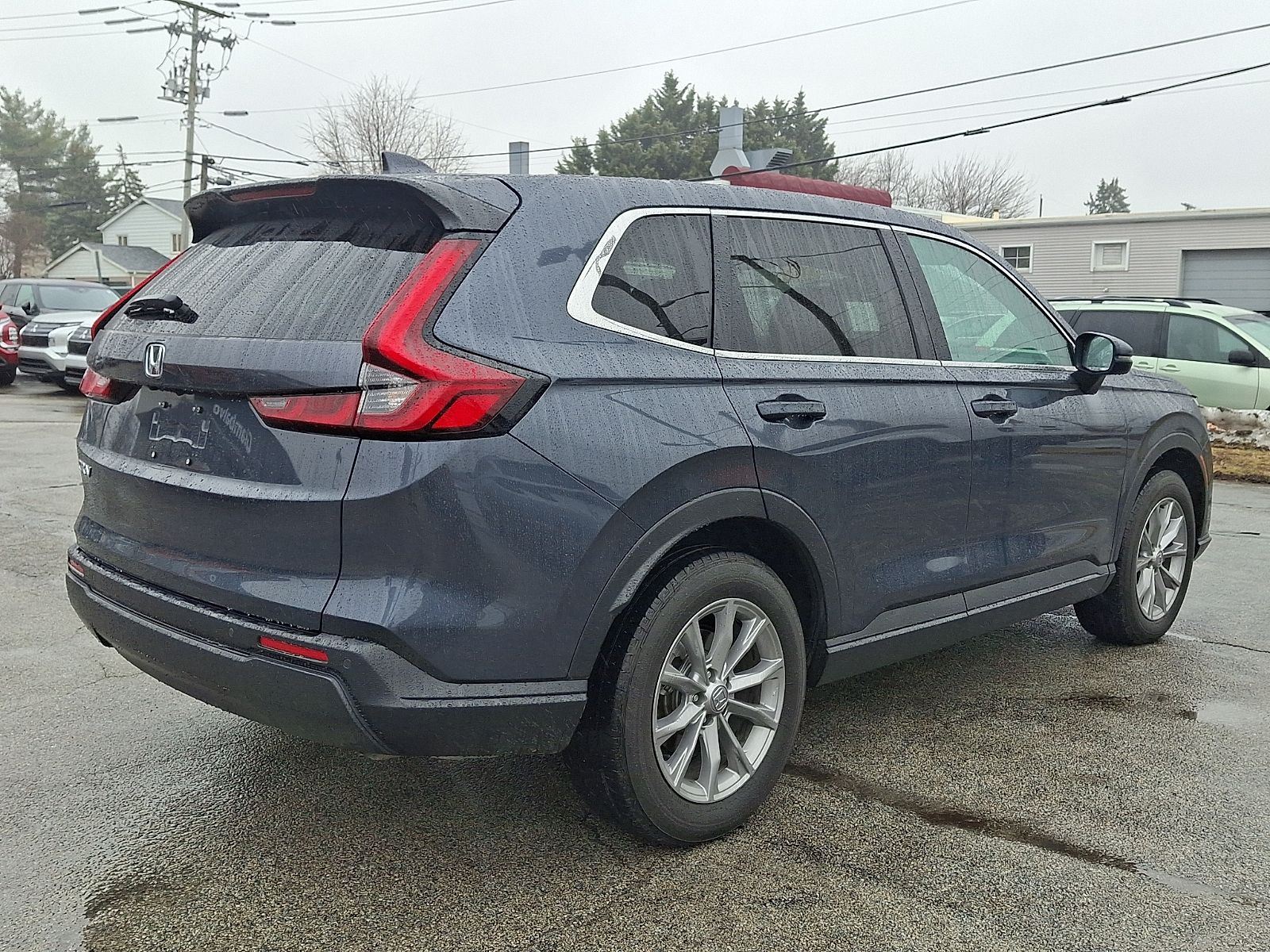 The EX L trim adds premium features including leather seating, heated front seats, power driver seat with memory, large touchscreen display, Apple CarPlay and Android Auto, blind spot monitoring, adaptive cruise control, lane keep assist, forward collision mitigation, power liftgate, and a spacious rear cargo area.