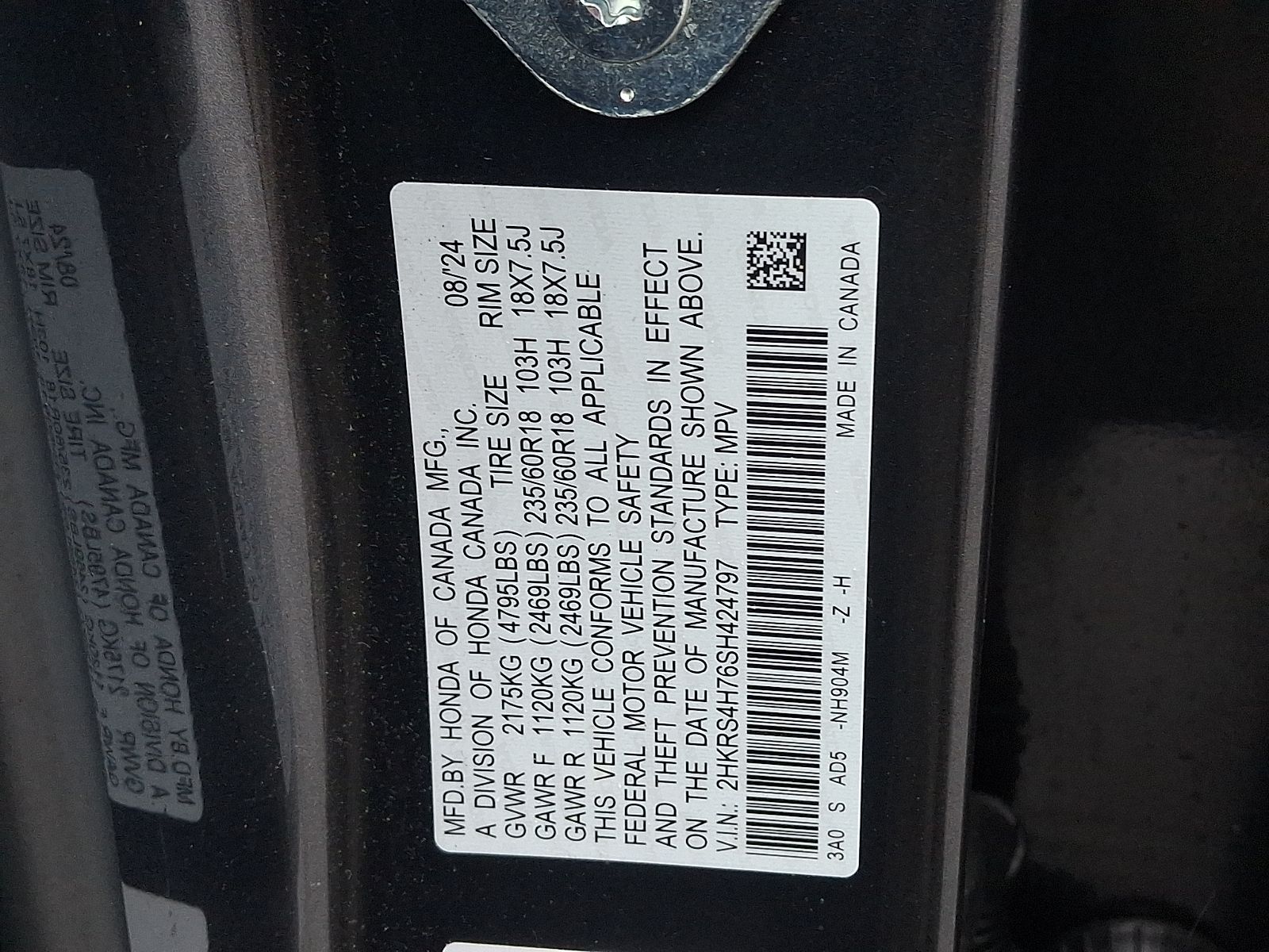 VIN 2HKRS4H76SH424797