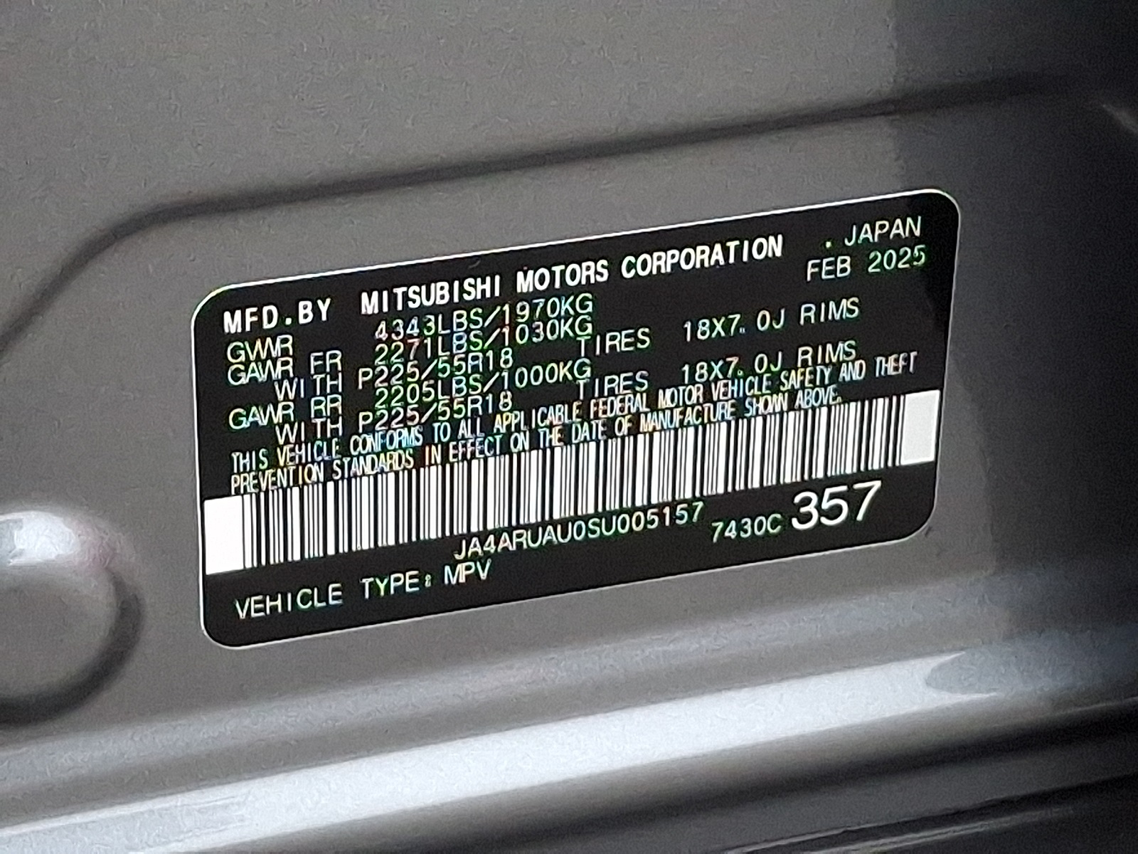 VIN JA4ARUAU0SU005157